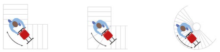 - LED diode smještene na vrhu upravljača omogućuju pregled ispravnog položaja dizala na rubu stepenice kada se spuštate (lijevo) i na stražnjem stupu kada se penje (desno). Sustav, budući da je vrlo intuitivan, ima LED diode s crvenim ili zelenim svjetlima