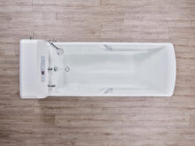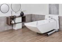 - Ergonomska unutrašnjost kade sa spuštenim dijelom za noge omogućuje udobno i sigurno kupanje korisnika sa i bez dizala