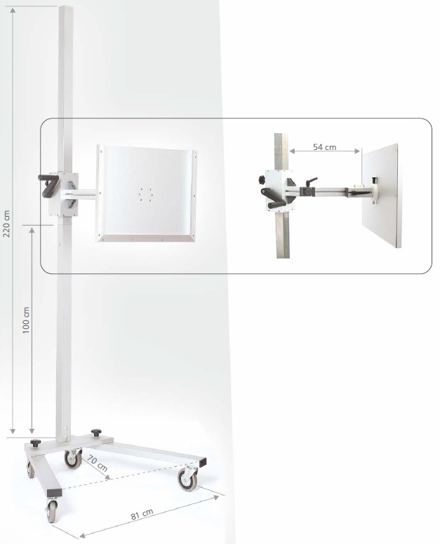 •  Mobilni specijalni stalak za DR detektor / CR kasetu i rešetku (35×43 cm)